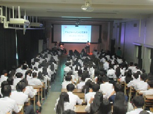 1年生「社会への扉」の授業では、自己の生き方を探求するという観点から、様々な学習をしています。これまで、生徒一人ひとりが、自身のおすすめ本を紹介し合い、評価してもらうビブリオバトル(書評合戦)に取り組んできました。書評を通じ、読む力、調べる力、まとめる力、表現する力、評価する力を総合的に高める授業です。今日は、その最終回ということで、各クラスの代表者に、おすすめ本の紹介をプレゼン形式で行ってもらいました。名作や話題作など、幅広いジャンルから「おすすめ本」が選ばれており、クラス代表者にふさわしいプレゼン内容でした。代表の発表を聞く側の皆さんも、しっかりと聞く姿勢ができていたと思います。今回の取組みをきっかけに、読書をより身近に感じてもらえたら嬉しいです。