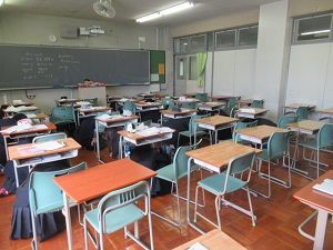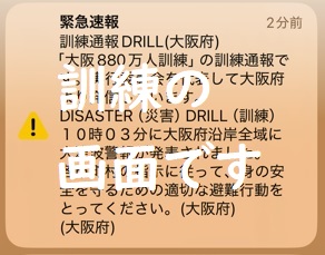 大阪880万人訓練 授業 2025.11.05 今日の10時に、大阪880万人訓練がありました。携帯電話にも、10時ちょうどに地震についてのお知らせが届きました。授業中ではありましたが、全員机の中に体を隠すなど、地震の際の行動をとりました。本校では、この訓練の時間に合わせ、校内で災害時に鳴る警報の音や、緊急地震速報の音を流し、緊急時、警報音に驚くことなく、正しい行動ができるよう注意を促しました。たかが訓練、されど訓練。普段からの心構えが大切ですね。