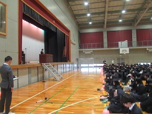 1月始業集会 学校行事 2026.01.09 1月8日から、再び学校が始まりました。初めに、体育館で始業集会を行いました。校長から生徒の皆さんに対して、1月は、1年の初めなので、目標を立てて何かを「始める」ことを薦めるとともに、学年の終盤でもあるので、学習など、最後まで「やりきる」ことも大切だというお話をしました。まずは皆さんの元気な姿を見ることができ、良かったと思います。