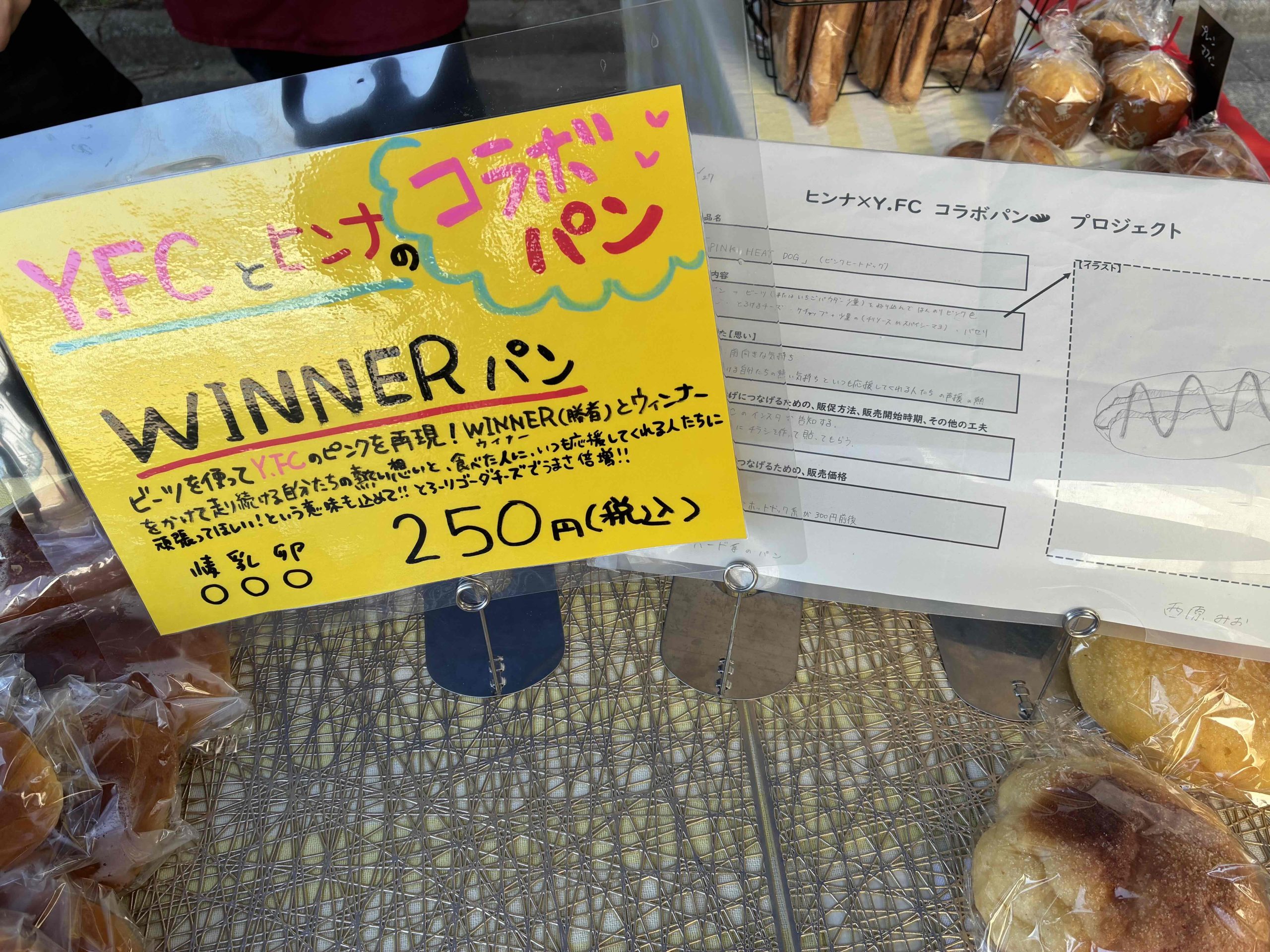 今後は「パンやきどころhinna」さんの店頭にもY.FCの特設コーナーを設けて販売してくださる予定です!