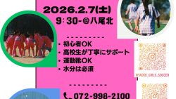 学年団 女子サッカー部イベント情報! 2月7日(土) Y.FC体験会 時間:9時30分~12時00分 場所:八尾北高校 既に2名の中学生が参加予定です‼ 本件に関する、お問い合わせは八尾北高校(072-998-2100)にお電話していただき、籔内までお繋ぎください。もし... 2026.02.04 学年団41期生サッカー部42期生43期生PTA地域連携